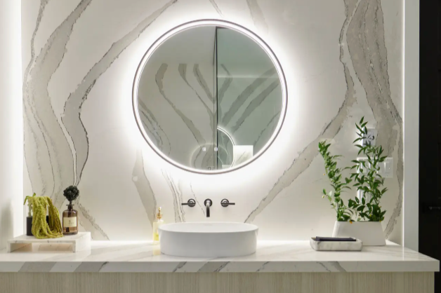 Light countertop colors like crisp whites and soft creams, often seen in quartz, quartzite, and marble, help reflect natural light and enhance the airy, coastal feel common in Savannah homes, with popular options from Cambria and MSI Quartz. One example we’ve seen customers gravitate towards is Cambria’s Brittanicca, a soft white quartz with subtle gray veining. We’re also seeing homeowners enjoy finishes that are easy to live with while still elevating the overall space.